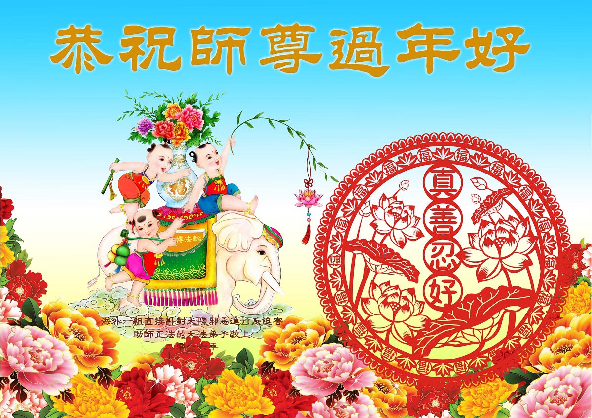 一组直接参与针对大陆邪恶進行反迫害的海外大法弟子恭祝慈悲伟大的师尊过年好!