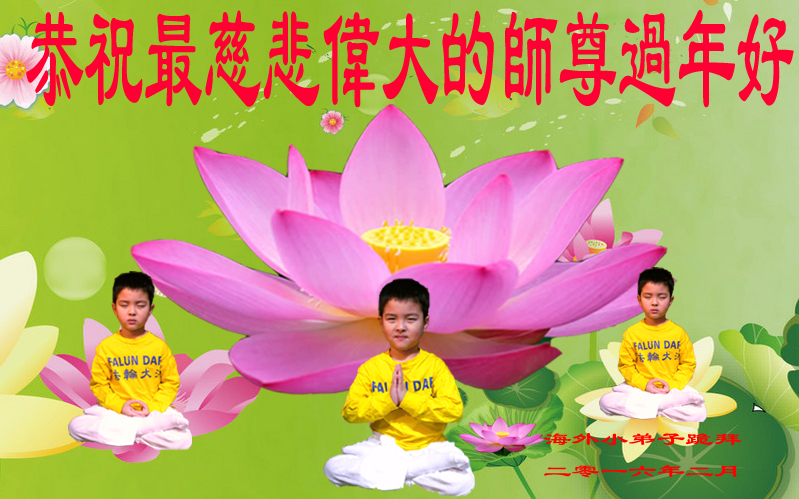 师父您辛苦了!千言万语道不尽弟子们对师尊的感谢和想念,愿师尊多一份欣慰,少一份操劳!再一次向慈悲的师父说一声:谢谢师父! 海外一家三代五位大法弟子恭祝师父新年好!感谢师父的慈悲苦度!