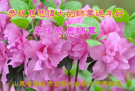 尊敬的师尊新年好!在这新的一年里,我们要继续努力做好三件事,修好自己,遇事向内找。请师尊放心。 山东烟台市一学法小组大法弟子恭祝慈悲伟大的师尊新年快乐!感恩师尊!