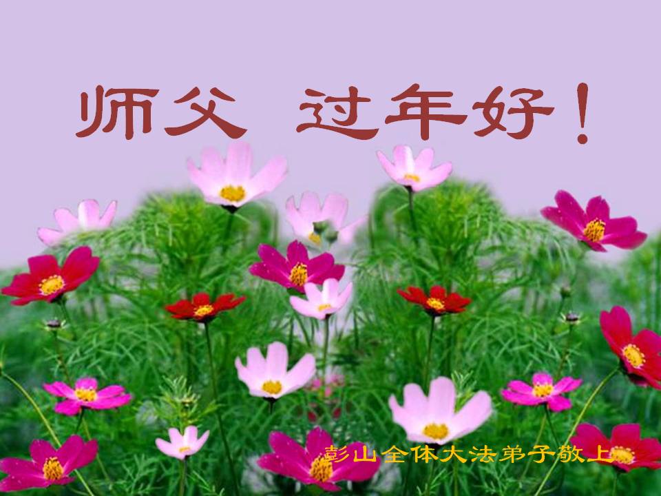 尊敬的师尊您好!在新年到来之际,向伟大的师尊问好!师尊为救度众生辛苦了!我们在的新的一年里一定做好三件事,少让师尊操心,精進实修,跟师尊回家! 四川彭山全体大法弟子恭祝慈悲伟大的师尊过年好!