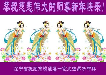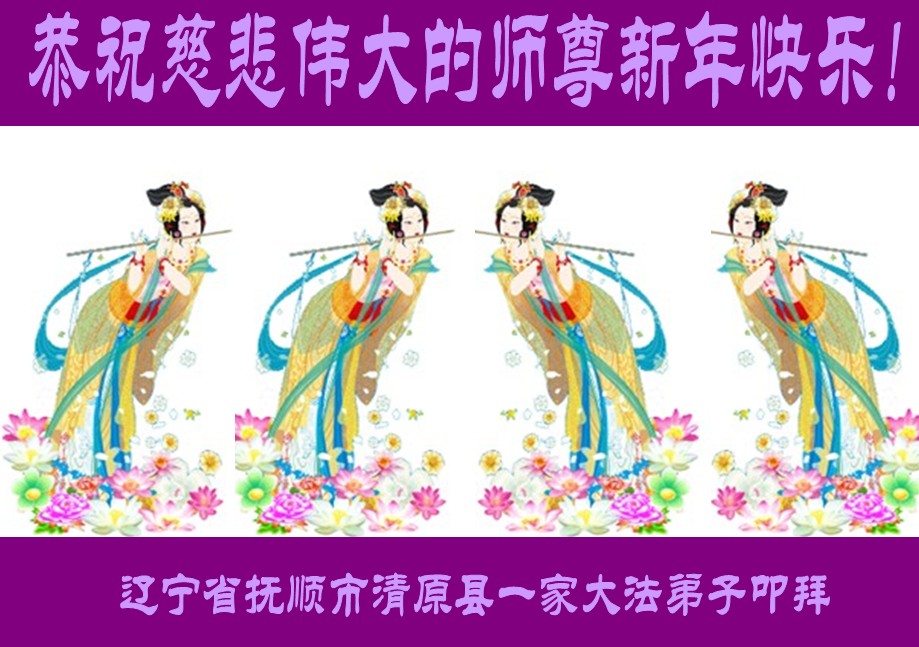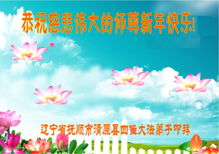 辽宁省抚顺市清原县4名大法弟子及40名亲人恭祝慈悲伟大的师尊新年快乐!