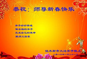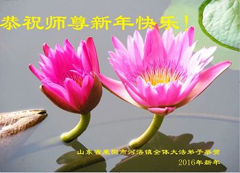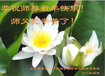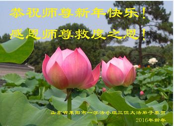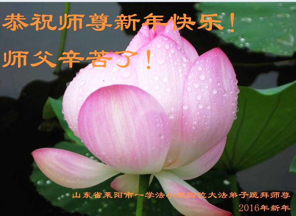 【明慧网二零一六年二月八日】 山东省烟台市莱阳市一学法小组四位大法弟子恭祝师尊新年快乐!