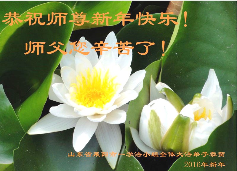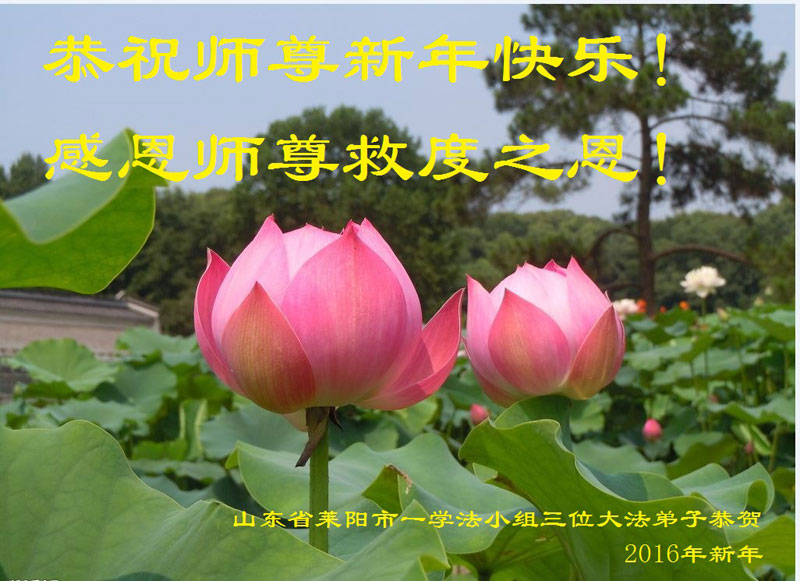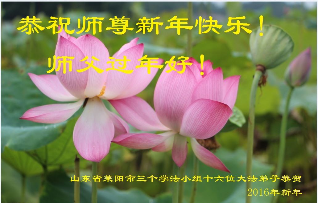 山东省烟台市莱阳市三个学法小组十六位大法弟子恭祝师尊新年快乐!