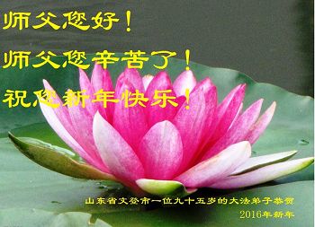 山东省威海市文登市一位九十五岁的大法弟子恭祝慈悲伟大的师尊新年快乐!