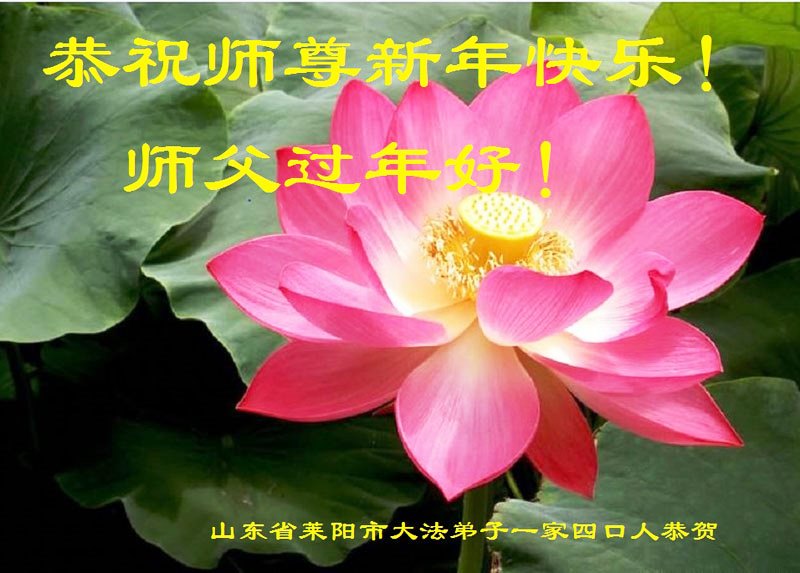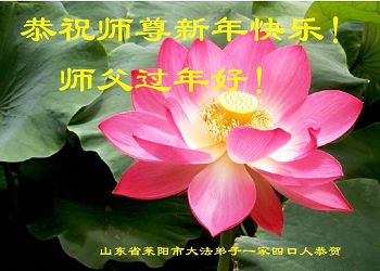 山东省烟台市莱阳市大法弟子一家四口人恭祝师尊新年快乐!