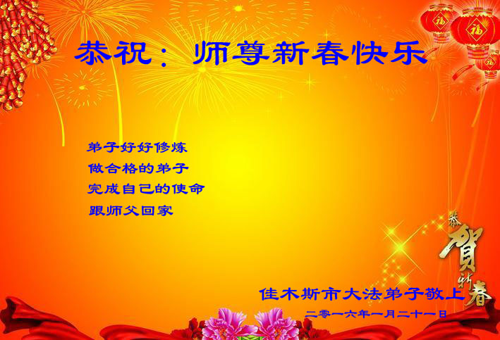 黑龙江省佳木斯地区全体大法弟子叩拜恭贺慈悲伟大的师尊新年快乐!