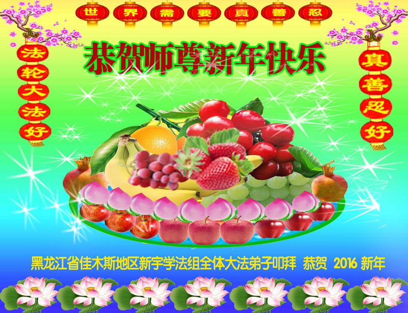 黑龙江省佳木斯地区大法弟子学法组全体大法弟子叩拜恭贺慈悲伟大的师尊新年快乐!