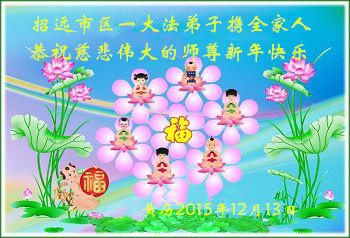 山东省烟台市招远市区大法弟子恭祝慈悲伟大的师尊新年快乐!