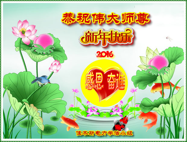感谢师尊的慈悲苦度。十八年来,从开始的祛病健身到现在助师正法,时刻都觉得,能做师父的弟子太幸福了。向师父保证,我和丈夫同修继续做好三件事,多救人。 黑龙江省佳木斯电力学法小组大法弟子恭祝伟大师尊新年快乐!