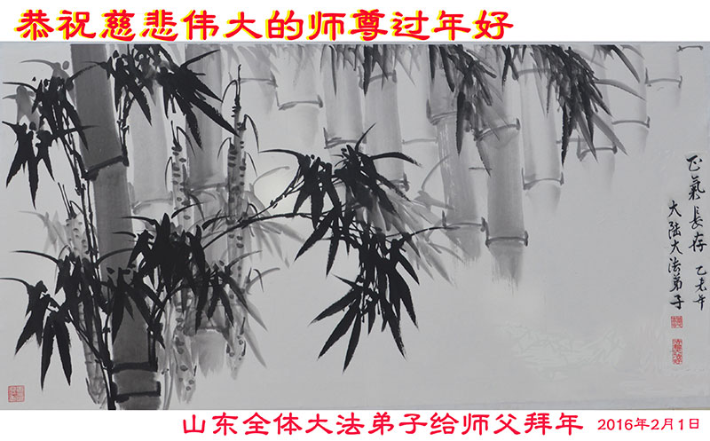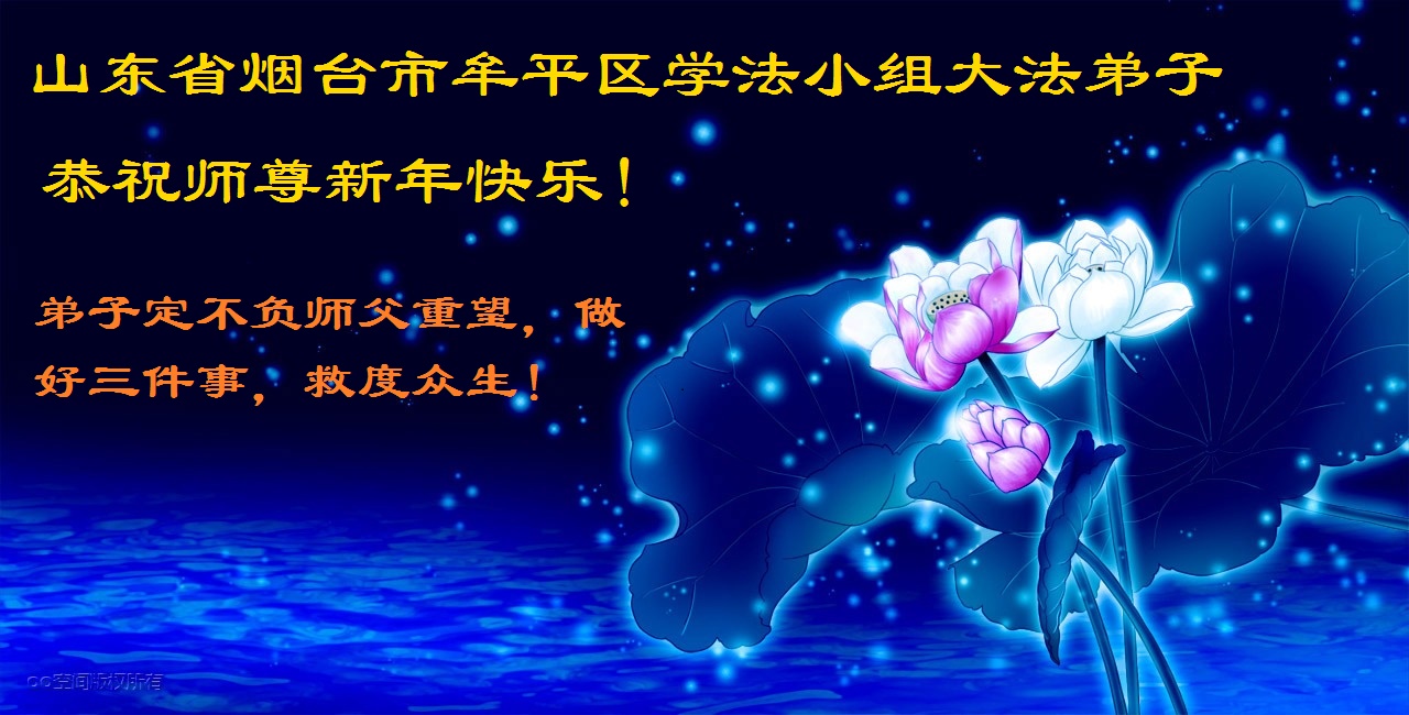烟台全体大法弟子恭祝师父过年好!在新的一年里我们会更加精進做好三件事,跟师父回家。 山东滨州全体大法弟子恭祝师尊新年快乐!