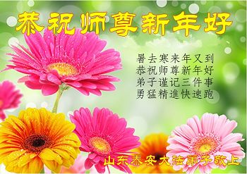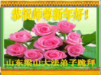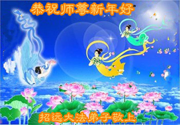 师父您好!您辛苦了!值此新年来临之际,弟子们叩首感激师尊的慈悲救度!弟子们将谨遵师尊教诲,做好三件事,正念正行,助师正法,圆容师尊所要的,在法正人间到来之前的有限时间里,勇猛精進,不辱师命!明白真相后的世人让我们代他们向慈悲伟大的创世主致以最崇高、最神圣的问候! 山东烟台市招远市区一大法弟子恭祝慈悲伟大的师尊新年好!
