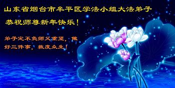 山东省烟台市牟平区学法小组大法弟子恭祝师尊新年快乐!