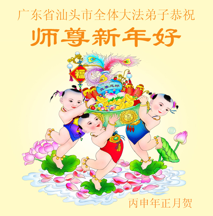 感谢师尊慈悲救度,弟子在新的一年里,做好三件事,勇猛精進,不愧对师尊的慈悲救度,值此新春佳节,陆丰地区全体大法弟子恭祝师尊新年快乐! 广东省汕尾市陆丰地区全体大法弟子敬上 生活在广东省东莞的大法弟子恭祝伟大的师尊新年快乐!