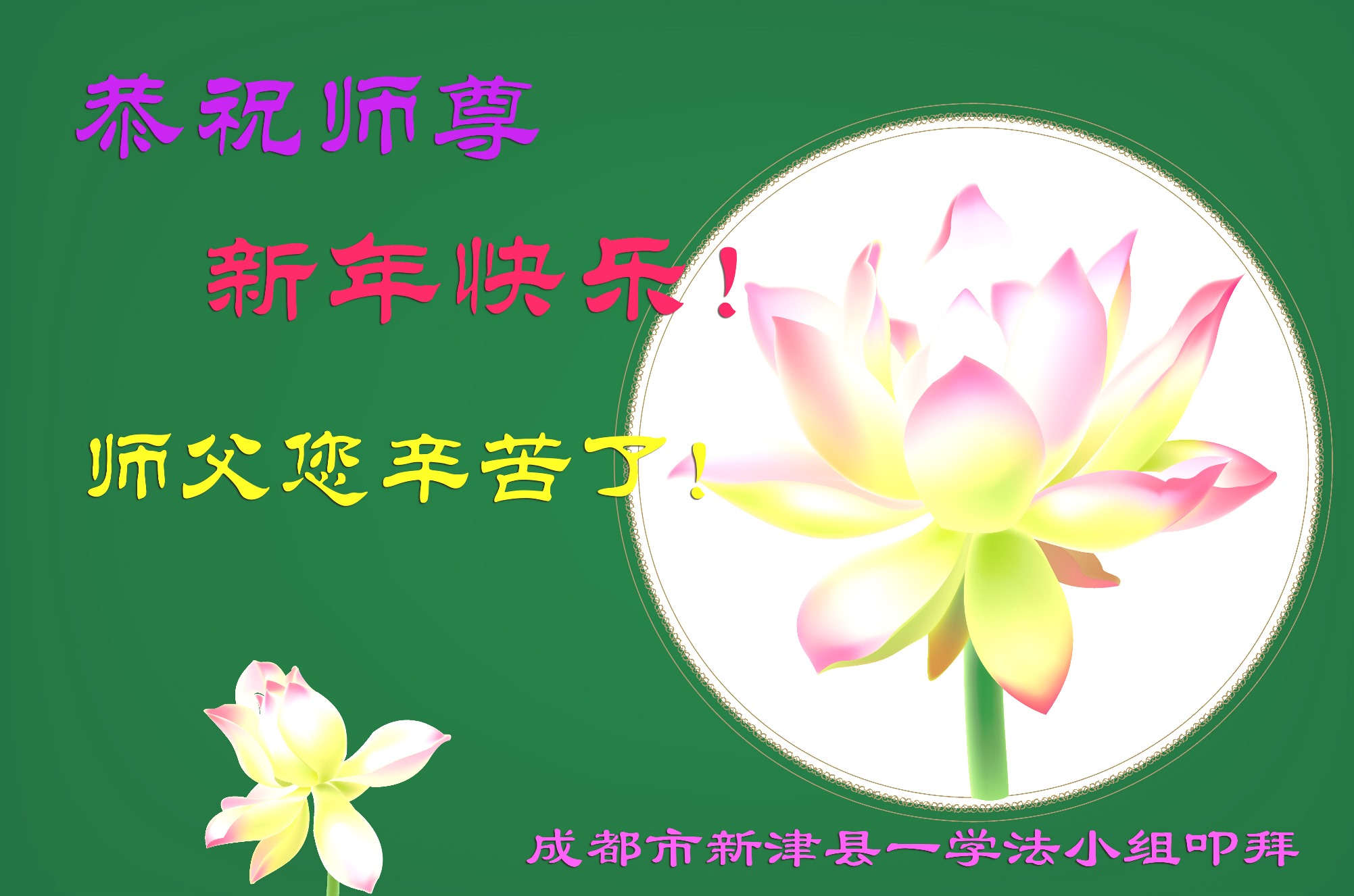 四川省成都一学法小组全体大法弟子恭祝慈悲伟大的师尊新年快乐!