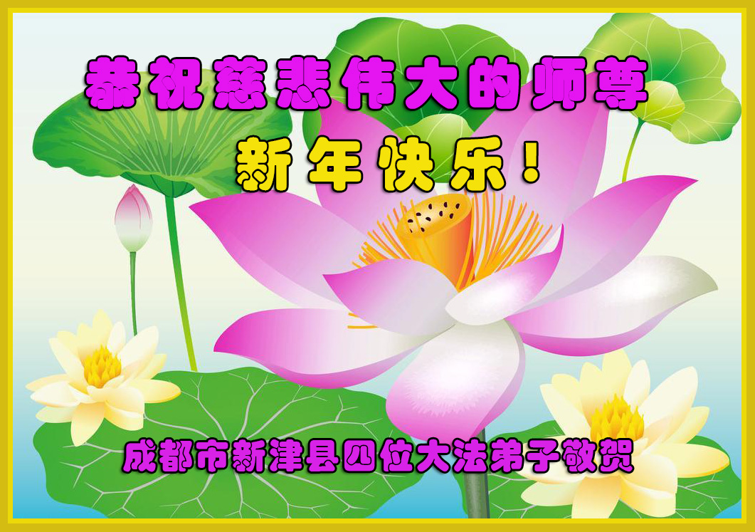 师尊辛苦了!弟子们叩谢师恩! 四川成都市六位大法弟子恭祝师尊新年好!