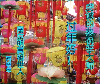 【明慧网二零一六年二月八日】 江苏省南京明真相世人虔诚的恭祝李大师过年好!