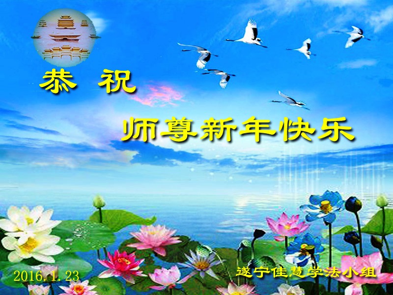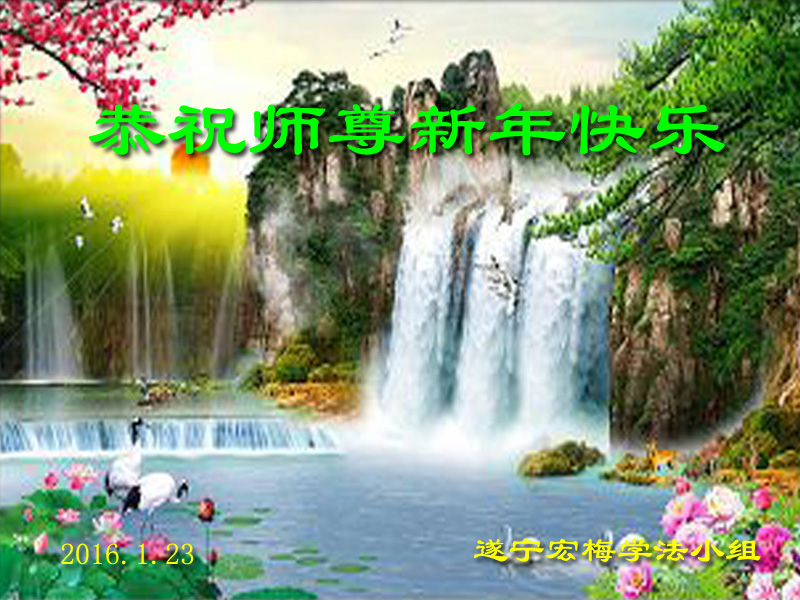 感恩师父的慈悲苦度,感恩师父的慈悲呵护!在新的一年里,弟子更要学好法,多救人,修好自己,精進精進再精進,以报师恩。 二零一六年元月二十三日 四川省遂宁佳慧学法小组大法弟子与支持大法的家人恭祝师尊新年快乐!