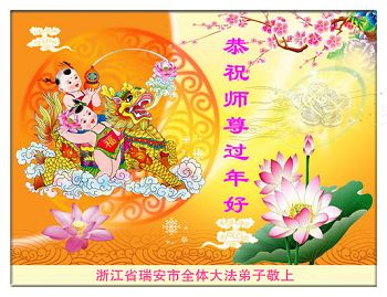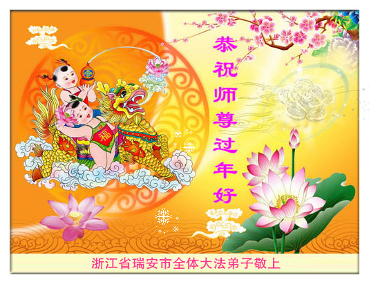 慈悲伟大的师尊:您好,您辛苦了!弟子们感谢师尊慈悲苦度。弟子们好想念您! 浙江省温州市瑞安市全体大法弟子恭祝师尊过年好!