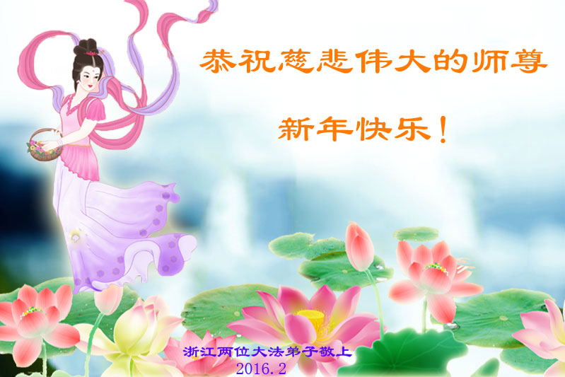 【明慧网二零一六年二月八日】 浙江两位大法弟子恭祝慈悲伟大的师尊新年快乐!