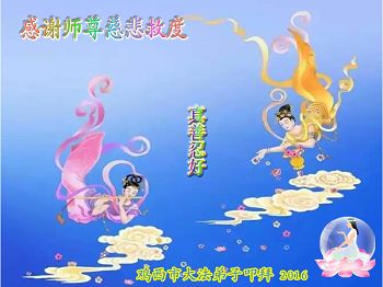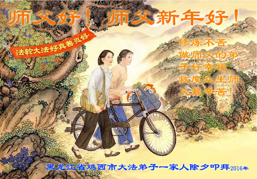 新的一年开始了 弟子只想说我没有做好 但是我会努力去做 不辜负师尊您的苦度 走在这修炼的路上 弟子好幸福 打开紧锁的双眉 没有病痛的折磨 心中只有修炼的路一条 走好走正不迷航 谢谢师尊的慈悲苦度 愿师尊笑口常开 二零一六年一月二十七日 黑龙江省鸡西市密山市大法弟子给师父拜年!师父过年好!