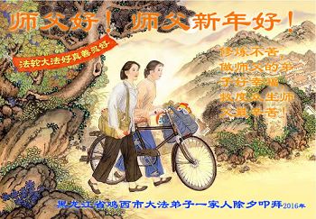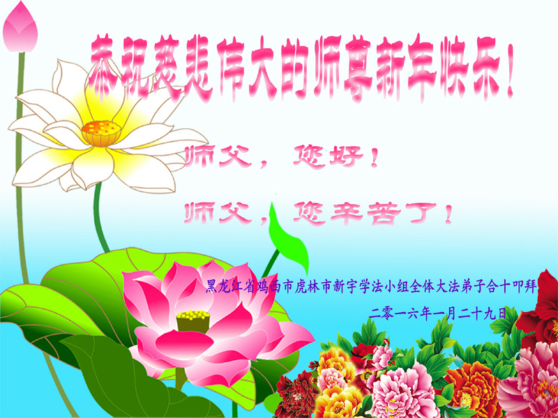 【明慧网二零一六年二月八日】 黑龙江省鸡西市虎林市新宇学法小组全体大法弟子恭祝师父新年快乐!