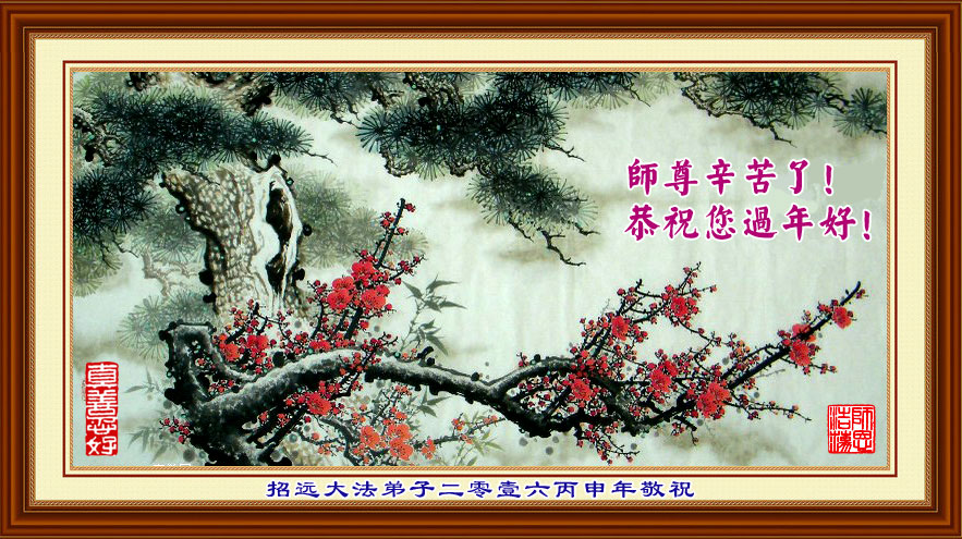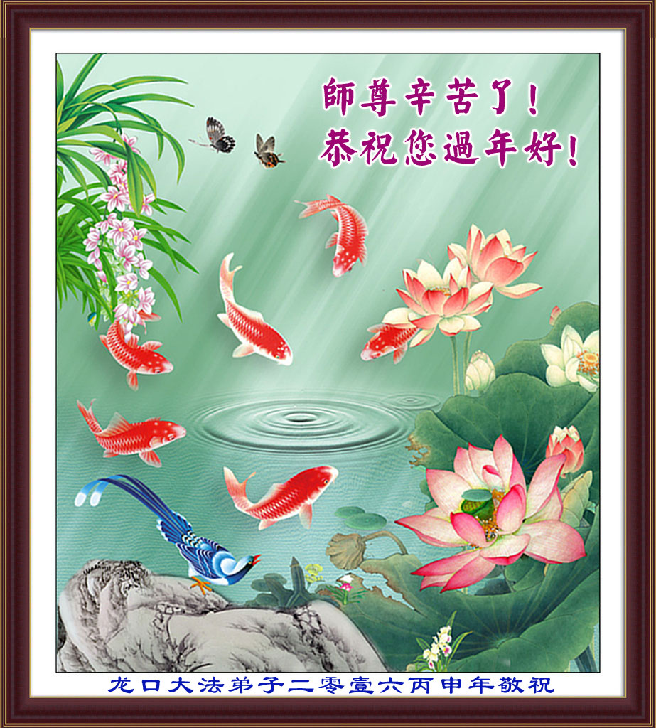 师尊辛苦了!恭祝您过年好!心想事成!万事如意! 招远大法弟子二零壹六丙申年恭祝 山东省烟台市龙口大法弟子恭祝师尊过年好!