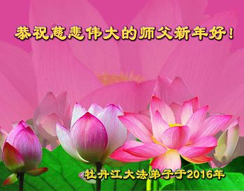 江苏昆山大法弟子恭祝师尊2016年新年快乐,师父辛苦了! 弟子希望在新的一年里,努力做好三件事,不辜负师尊的慈悲救度! 弟子道不尽对师尊的感恩!唯有精進跪谢师尊! 四川大法弟子恭祝师尊新年好!新年快乐!