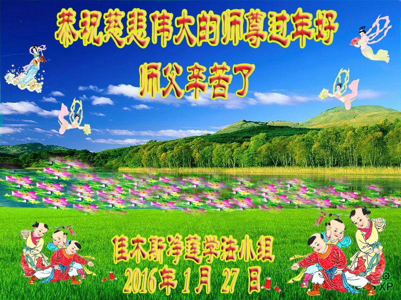 黑龙江省佳木斯净莲学法小组大法弟子恭祝慈悲伟大的师尊过年好!