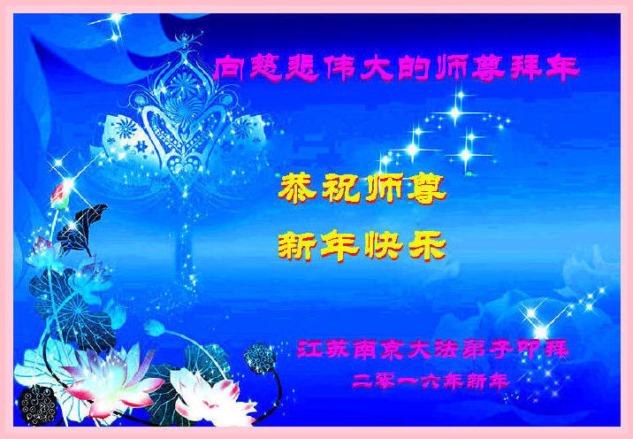 江苏南京大法弟子恭祝慈悲伟大的师尊新年快乐!
