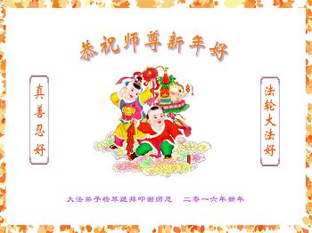 师父过年好!师尊您辛苦了! 弟子们会精進精進再精進,净心学法,向内找,多救人,完成使命和责任,愿师父多一份欣慰少一些操劳。 再次恭祝师父过年好!感恩师尊的慈悲苦度,弟子叩拜师恩! 2016.2.2 大陆大法弟子恭祝师尊新年快乐!