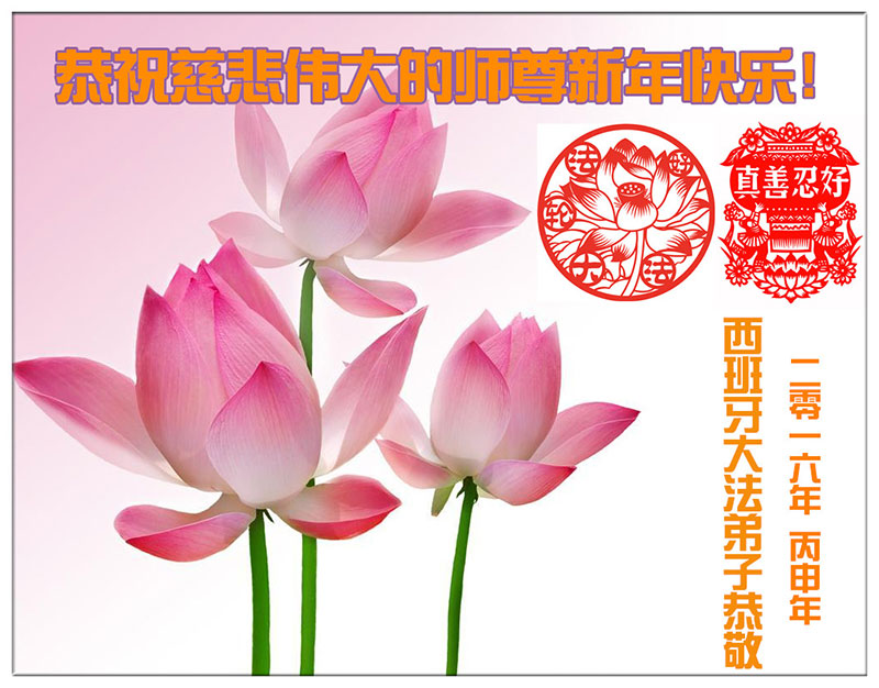 【明慧网二零一六年二月八日】 西班牙大法弟子恭祝慈悲伟大的师尊新年快乐!
