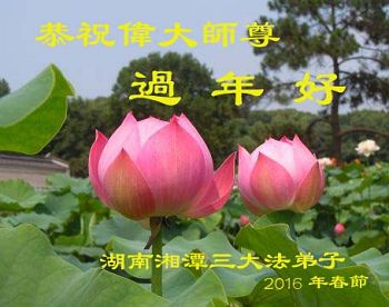 【明慧网二零一六年二月八日】 湖南常德市学法小组大法弟子恭祝师尊新年快乐!过年好!
