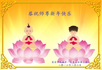 北京大法弟子 二零一六年二月二日 北京一学法小组的大法弟子恭祝慈悲伟大的师尊新年好!