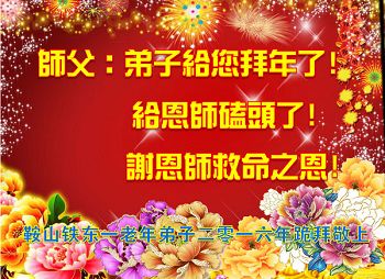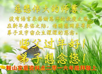 师尊您辛苦了! 弟子无法用语言表达心情,唯有做好三件事,让师尊欣慰! 吉林省长春大法弟子恭祝师尊过年好!
