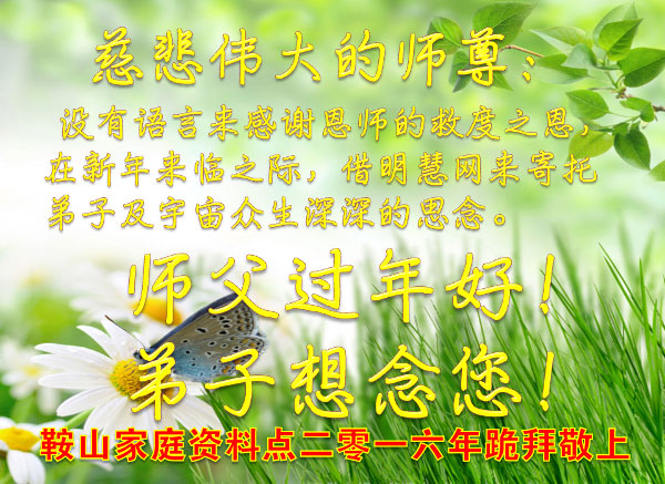 辽宁省鞍山家庭资料点大法弟子恭祝师尊过年好!
