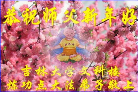 恭祝师父新年快乐! 吉林大学外语楼炼功点大法弟子敬贺