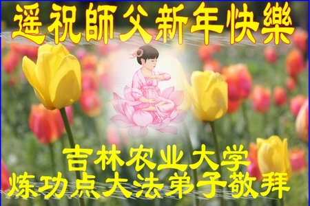 遥祝师父新年快乐! 吉林农业大学炼功点大法弟子敬拜