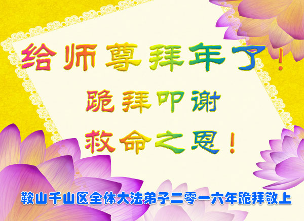 【明慧网二零一六年二月八日】 辽宁省鞍山全体老年大法弟子恭祝师尊过年好!