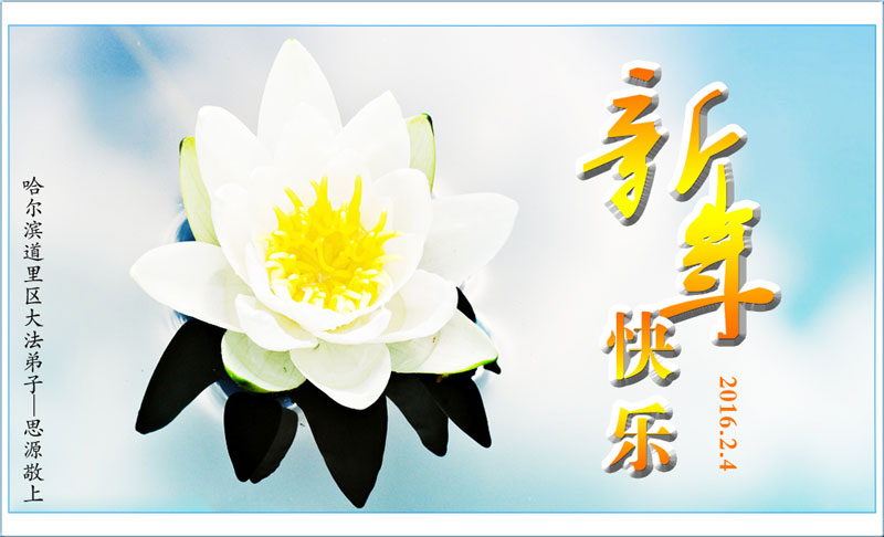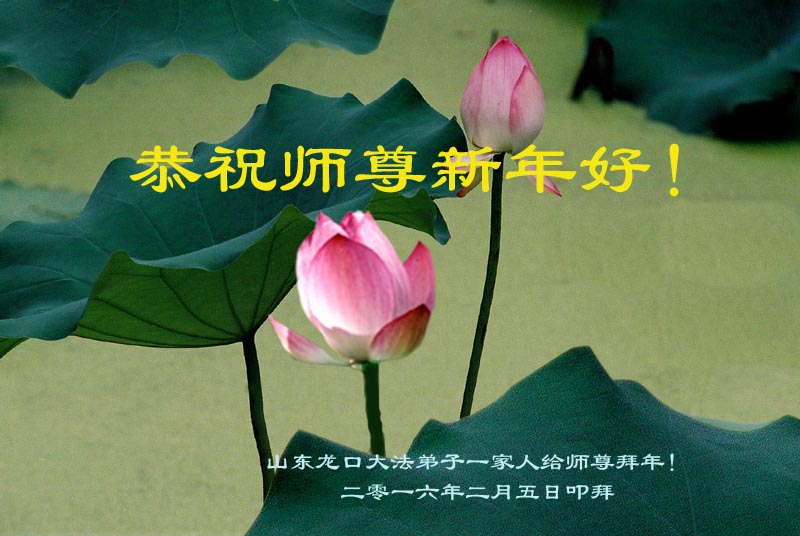 师父啊!在您为众生无量的付出与承受中,我们又迎来了新的一年。我们懂得了每一分、每一秒,都是众生得救的希望。二零一六的新年序幕就要拉开,牟平大法弟子向师父叩拜:我们一定听您的话,以法为师,在这值千金值万金的时光里,刻满我们助师正法的辉煌!牟平大法弟子叩谢恩师! 辽宁省本浮市大法弟子恭祝慈悲伟大的师尊新年好!
