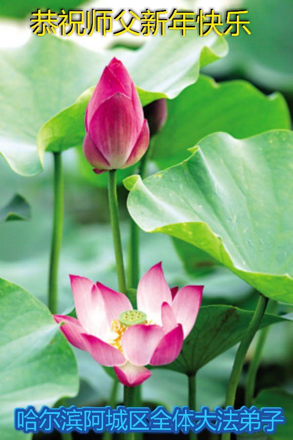 黑龙江省哈尔滨市阿城市区全体大法弟子恭祝师父新年快乐!