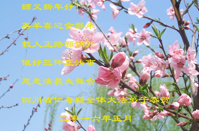 四川省眉山市仁寿县全体大法弟子叩拜师父新年好!