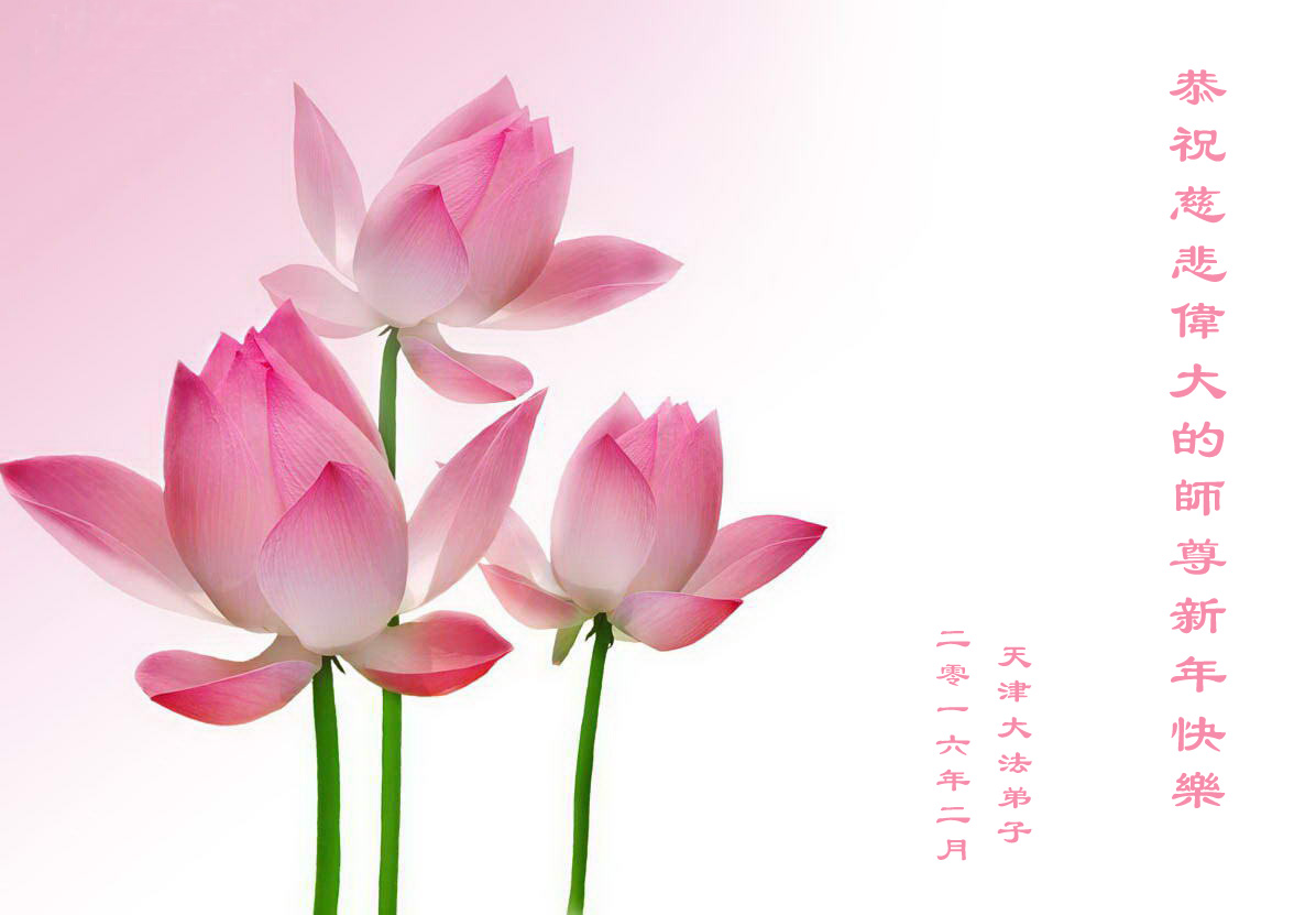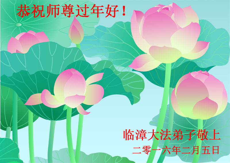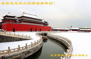 慈悲伟大的师尊:我们是北京西城区学法小组的大法弟子, 给您拜年了!感谢您的慈悲救度,弟子会做好三件事,早日随师还。 河北邯郸临漳县一学法小组大法弟子恭祝师尊过年好!师父您辛苦啦!