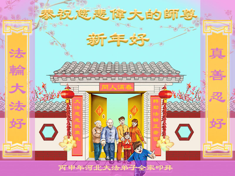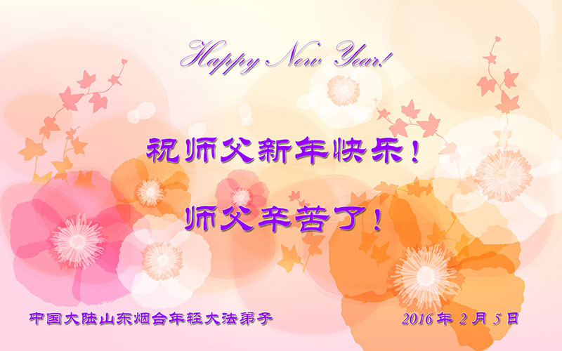 在这新年即将到来之际,河北省宁晋县全体大法弟子非常想念师父,感恩师父对我们弟子及众生的慈悲苦度,我们一定要抓紧有限的时间修好自己,救度更多的众生。谢谢师父!叩拜师父! 山东烟台年轻大法弟子祝师父新年快乐!