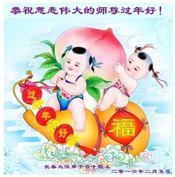 在2016年皇历新年到来之际,山东淄博开发区全体大法弟子祝慈悲伟大的师尊新年好! 师父您辛苦了,弟子们谨记师尊教诲,做好三件事、圆满随师还。 大陆一学法小组大法弟子祝慈悲伟大的师尊新年好!