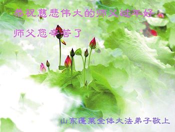 恭祝伟大的师尊新年愉快! 石家庄裕华区学法小组敬上 山东烟台市蓬莱全体大法弟子恭祝慈悲伟大的师尊过年好!