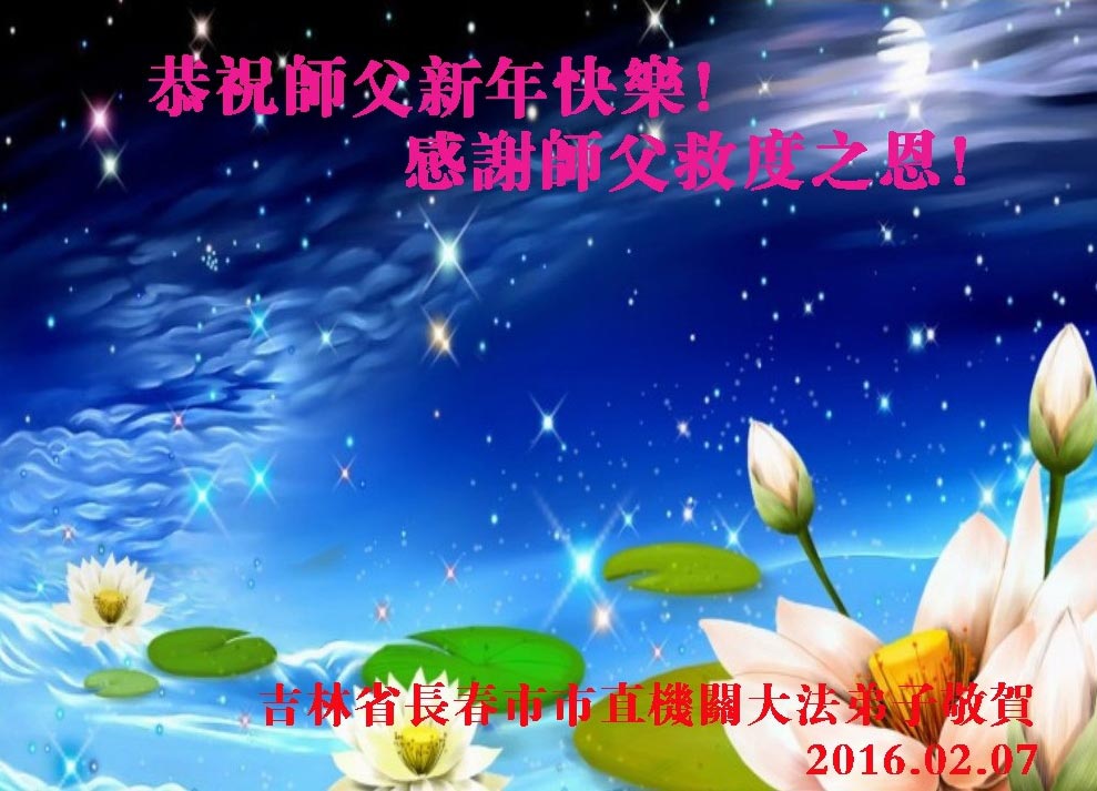 悠悠岁月,转眼间2016年新年到了,弟子们一定做好三件事,勇猛精進!让师父少一份操劳,多一份欣慰,随师父一同返回自己真正的家园。 河北承德大法弟子恭祝师尊新年好!