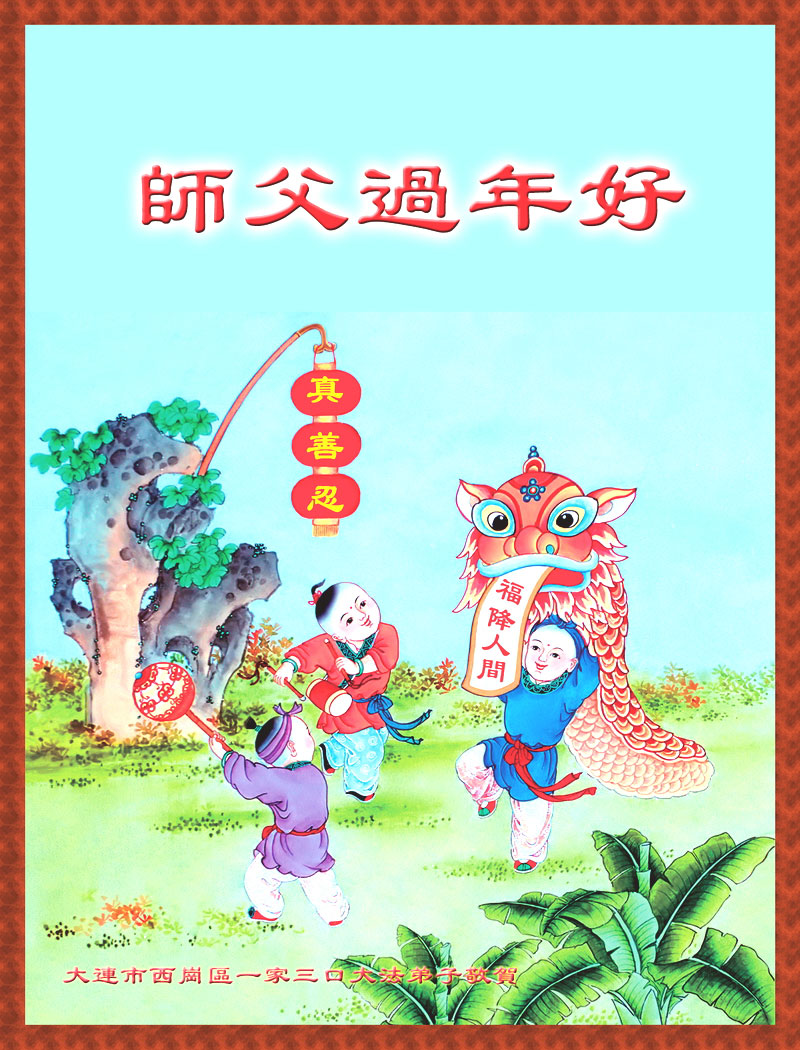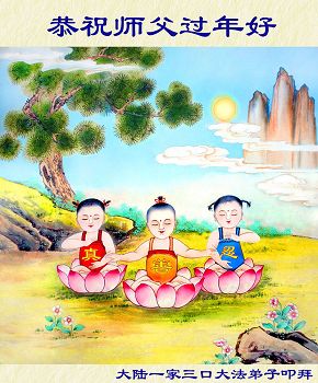 千言万语无法诉说师父的洪恩,弟子唯有精進实修、走好最后的修炼路,才不辜负师父的慈悲救度! 大陆一家三口大法弟子恭祝慈悲伟大的师尊过年好!