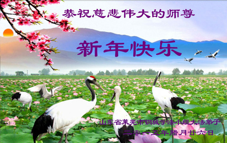 山东省莱芜市钢城学法小组大法弟子恭祝慈悲伟大的师尊新年快乐!