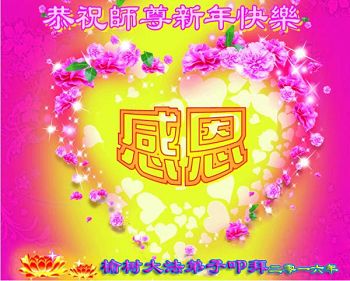 感谢师尊的慈悲苦度,把我们从地狱中捞起,给了我们全新的生命,我们全家沐浴在师尊的洪恩浩荡之中。在此代表全家叩拜师尊,感谢伟大的师尊!合十 黑龙江省绥化一老年大法弟子恭祝师尊新年快乐!