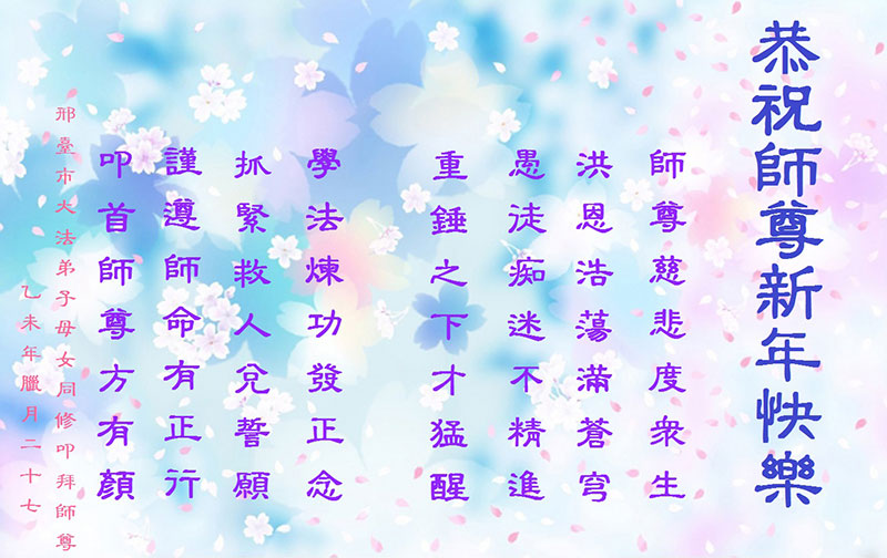 您的承受之苦与救度之恩,弟子无以为报,只愿每日更加精進,做好三件事,早日圆满随师返家。 河北省邢台市大法弟子祝师尊新年好!